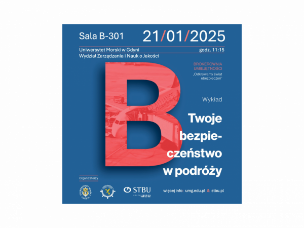 Partner naszej uczelni, Sopockie Towarzystwo Brokerów Ubezpieczeniowych (STBU), zaprasza na wykład poświęcony ubezpieczeniom w podróży. Wykład odbędzie się 21 stycznia (wtorek) o godz. 11.15 w sali B-301, a poprowadzi go Pani Izabela Wilant, Specjalista ds. Likwidacji Szkód STBU.